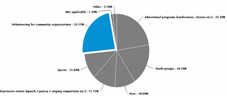- Education (22.57% males and 22.3% females) and the second is volunteerism (21.21% males and 24.31% females) [See Figure 2]. Art and Creative Expression combined were the third most cited source of identity development among young Muslims.